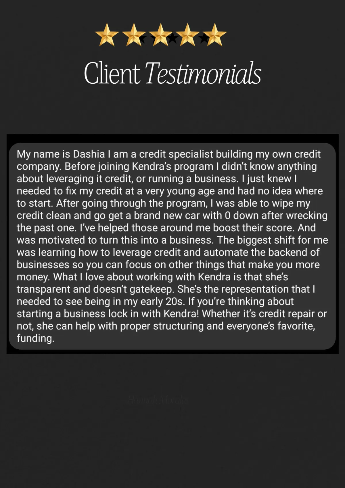 But within a year, I was able to raise my credit score from 488 to 784 and started my own credit repair and consulting company. I was then able to grow and scale it to over half a million in revenue in two years. I obtained 6-figures in credit in less than 24 months.